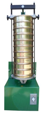 The economy sieve shaker can be used with 3", 5" and 8" sieves. It can handle up to ten 8" sieves, twelve 5" sieves, sixteen 3" full-height sieves or eighteen half-height 8" sieves. This shaker uses a 1/3 hp motor with a 30-minute timer. Unit should be bolted to bench for correct operation. Dimensions 15"w x 15"d x 45"h (380 x 380 x 1143mm).